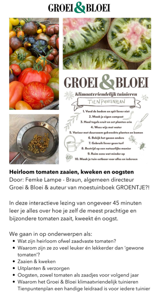 Dinsdag 24 maart 20 - 22 uur Amateurtuindersvereniging Utrecht Zuid