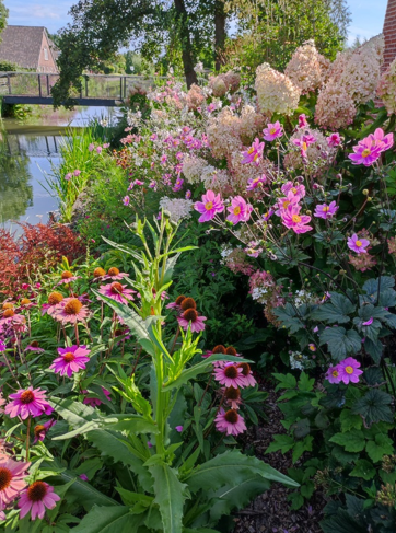 De tuin van Peter en Nelleke is gelegen op een perceel van 1100 vierkante meter en omringd aan 3 zijden door water.