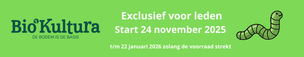 Vanaf maandag 24 november vanaf 10.00 uur – kunnen leden van Groei & Bloei profiteren van kortingen tot wel 20% op een breed assortiment van duurzame bodemproducten van Bio-Kultura, verkrijgbaar via de Groei & Bloei webshop. Deze biologische producten dragen bij aan een gezonde, levende bodem en een groene toekomst.